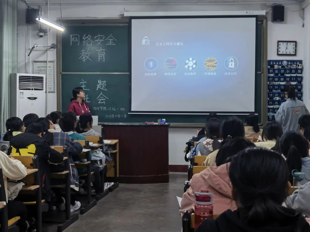 (通讯员:滕文珍)为加强学生的网络安全防范意识,着力提高学生网络素养,统计学院于10月11日晚在统计学院楼召开网络安全教育主题班会,参加人员为统计学院全体同学。