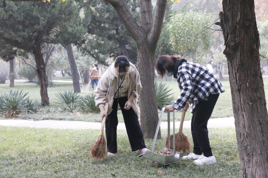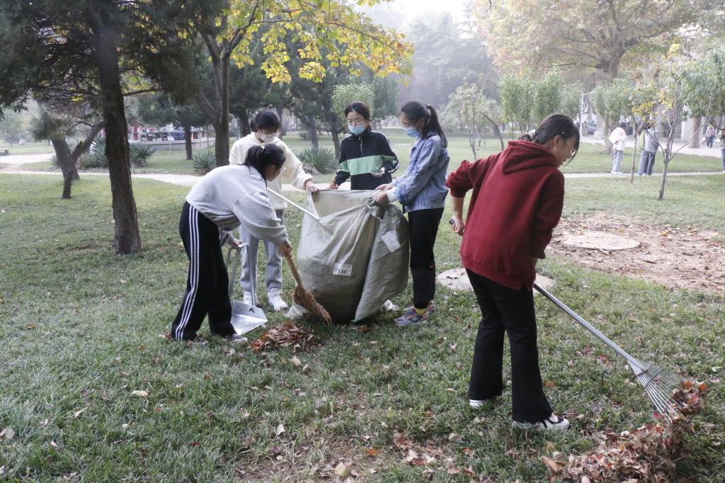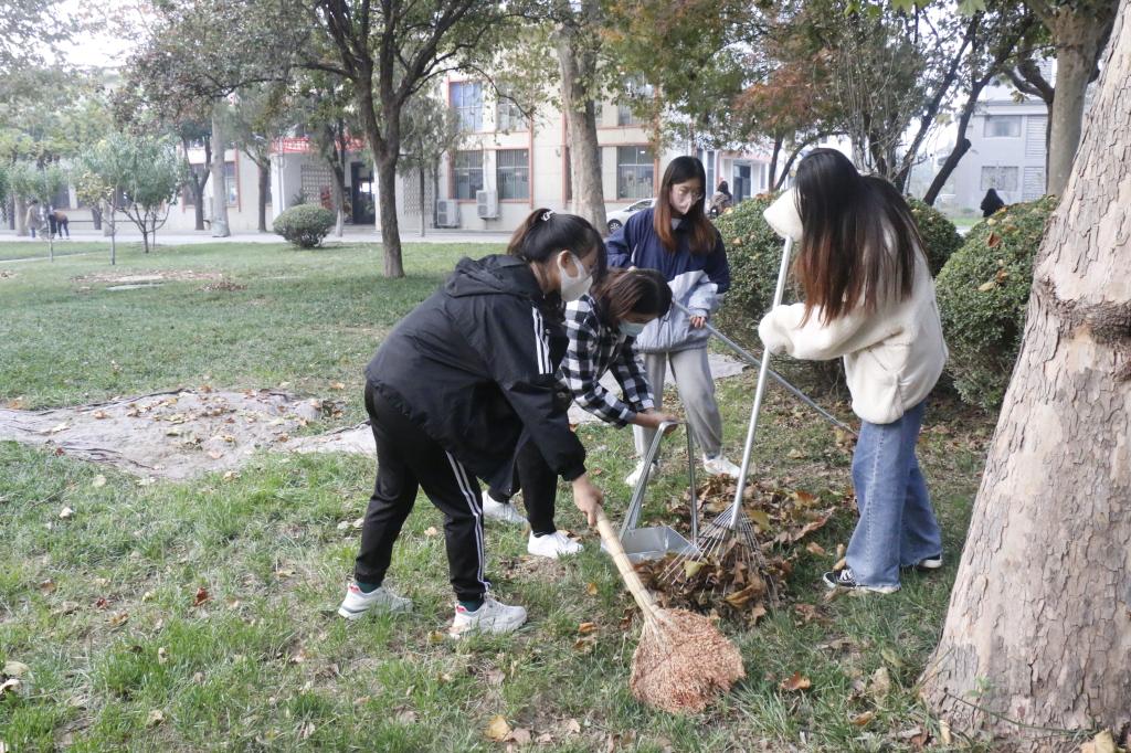 活动开始,全体成员对卫生区进行了划分,随后领取工具,进行打扫。在整个劳动过程中,同学们态度端正,分工明确,有条不紊地进行了草坪清理、人行道打扫、捡树叶、倒垃圾,并在打扫的过程中注意了校园植被的保护。最后,在大家的辛勤劳动下,垃圾、落叶被清扫干净,桃李园卫生区变得更加干净美丽。同学们在本次实践活动中提升了自身责任意识,加深了对党的初心的理解和认识,充分展现了“我是党员,我为师生办实事”的活动主题。