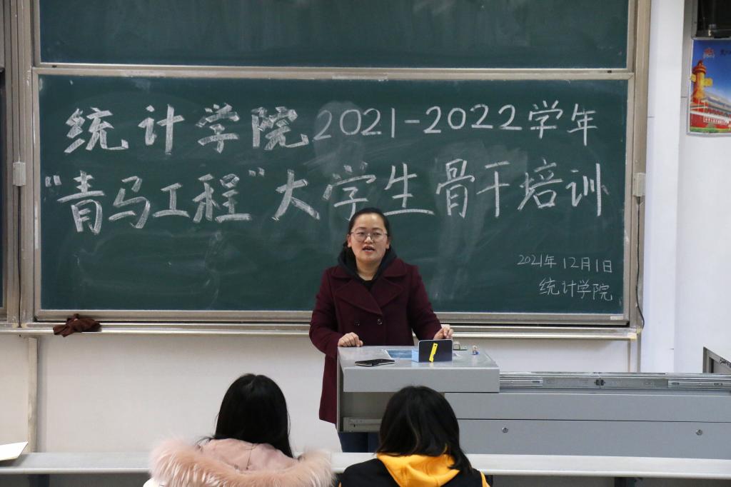 (通讯员:姬诚 李凯运)为落实习近平教育论述中青年人才的培养目标,提高统计学院学生会干部的整体素质,加深学生干部对自身工作的认识,统计学院于12月1日下午3:00在综合楼301教室举办“青马工程”大学生骨干培训。学院团委书记李宴美以“如何做一名优秀的学生干部”为主题讲授了“青马课”,统计学院“青马课”学员参加了学习。