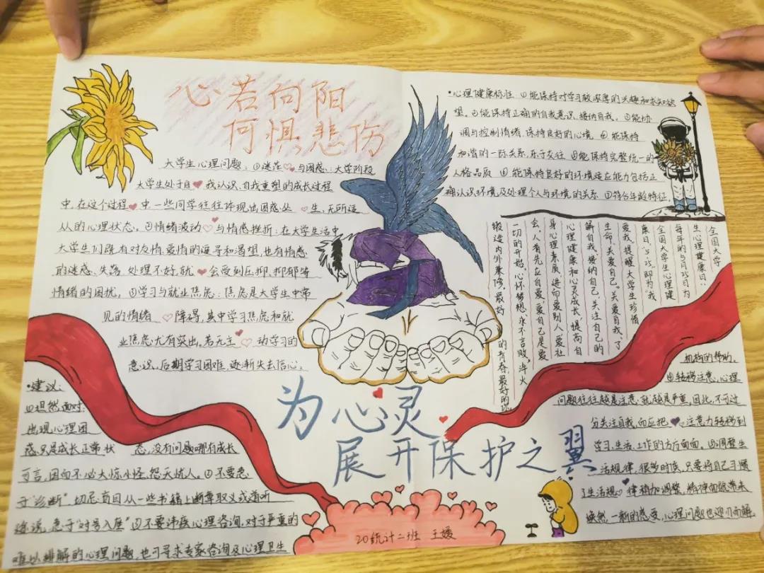 统计学院宣传部讯(通讯员:滕文珍)5月是心理健康月,为了加强统计学院学生的心理素质教育,营造学院关爱心理健康的良好氛围,统计学院权益与心理健康部开展了“我以我手绘我心,我以我笔抒我情”心理健康教育活动,活动以手抄报大赛的形式开展,统计学院各年级学生积极参与,优秀作品层出不穷。