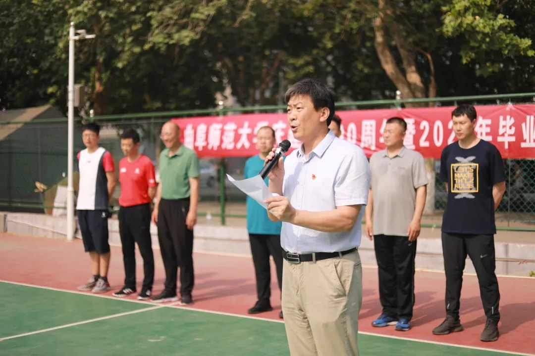 特举办“庆建党100周年暨2021年毕业杯篮球赛”。开幕式于6月2日下午15:00在北篮球场内顺利举行,统计学院党委副书记季中、团委书记李宴美以及2019、2020级辅导员张庆伟出席此次开幕式,统计学院篮球队全体成员参加。