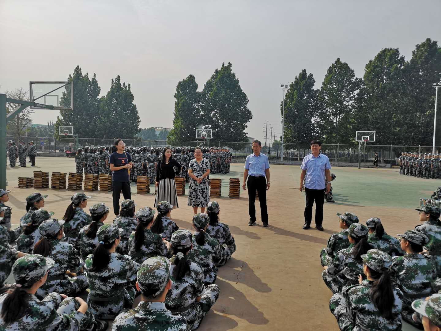 军训动员大会上,首先由国旗护卫队举行升旗仪式,全体师生唱国歌。紧接着,授与教官军旅旗、领导发言、教官代表发言。随后,疯av