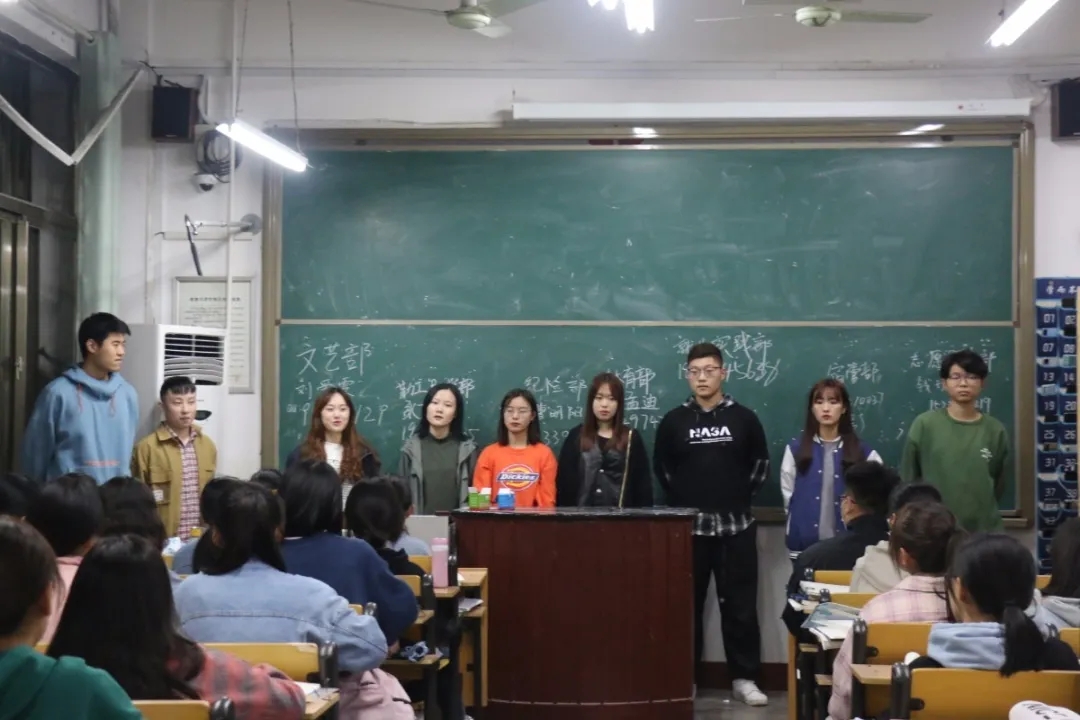 首先,主席团成员与各部门部长一同进入20级各班进行自我介绍。20级新生用热烈的掌声欢迎师哥师姐们。随后,在各主席团成员的带领下,各部门副部长分组进入各个班级进行自我介绍与部门简介。宣讲过程中,各部门副部长根据自己部门的职能、特点进行了详细的宣讲,使新生们初步了解了疯av