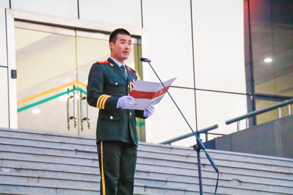 首先,由校方领导讲话,讲述一二·九运动的起因和过程,并深情缅怀前辈们勇于抗争的精神和爱国主义情怀。而今天2017级学生齐聚于此,就是要重温那段可歌可泣的历史,勿忘国耻,继承和发扬爱国主义精神。七点整升旗活动开始,由我校19届国旗护卫队成员担任执行,在国歌声里国旗缓缓上升,整个过程中同学们聚精会神,态度严肃。