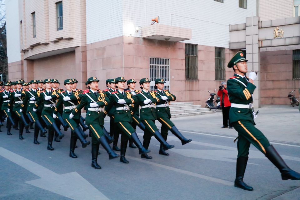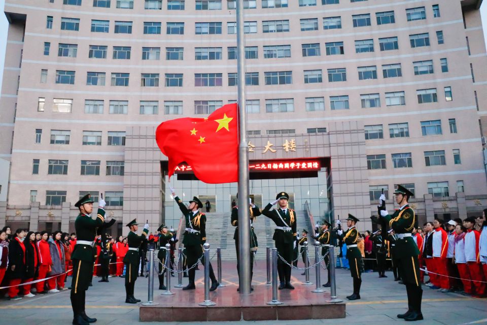 于孔子文化广场举行纪念一二·九抗日救亡运动升旗仪式。全校新生身着系服提前于孔子文化广场前集合