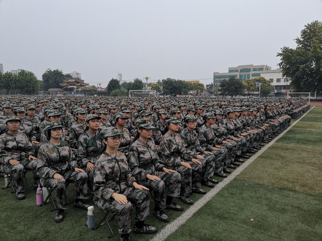 2019级新生军训动员大会。统计学院院长尹传存、辅导员李宴美、张庆伟,2019级统计学院全体新生到场参加了此次大会。