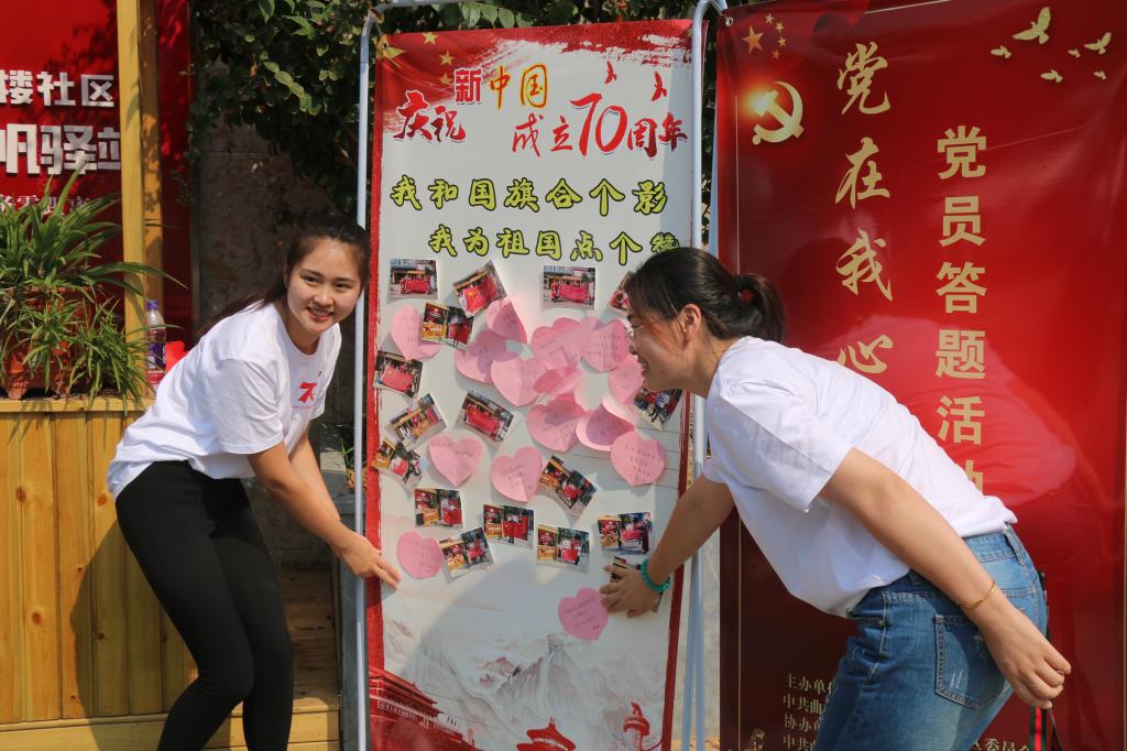 为庆祝中华人民共和国成立70周年,推动习近平新时代中国特色社会主义思想深入人心,推动党员不忘初心、牢记使命主题教育活动。统计学院联合其社会实践联建单位鼓楼社区于国庆节期间在后作街天福园红帆驿站开展“党员答题有奖”志愿者活动。