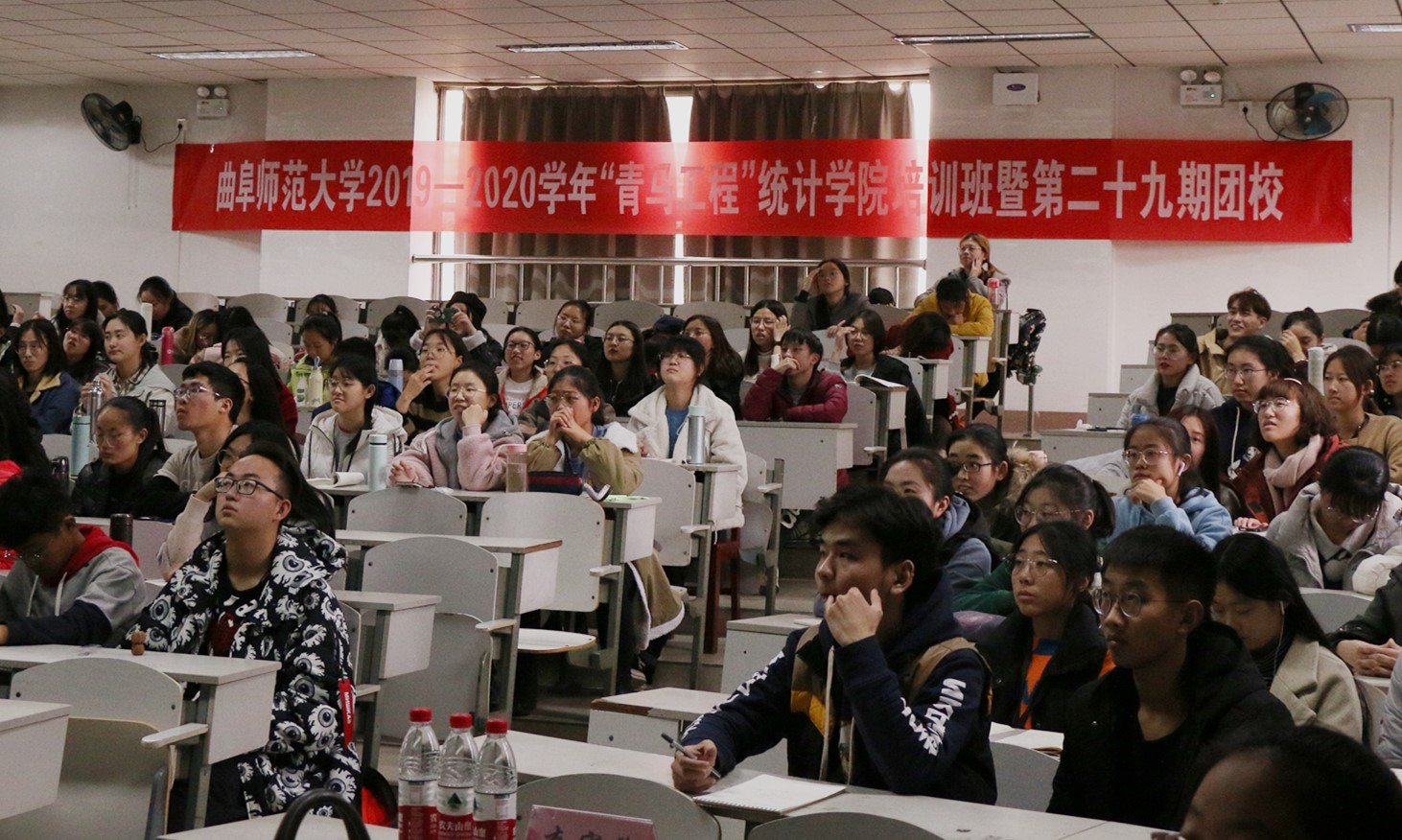 为进一步提高新一届学生干部的综合素养,帮助学生坚定信念,锤炼品格。统计学院“青马工程”培训班暨第二十九期团校开班仪式于11月20日下午两点在综合楼306教室成功举办。出席本次仪式的有校团委书记宋国栋,校宣传部刘萌,17级辅导员李宴美,19级辅导员张庆伟及统计学院本期青马班173名学员。会议由李宴美老师主持。
