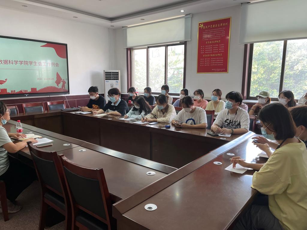 团委工作会议。学院团委书记李宴美主持本次会议,团委学生会主席团成员和各部门部长参加会议。