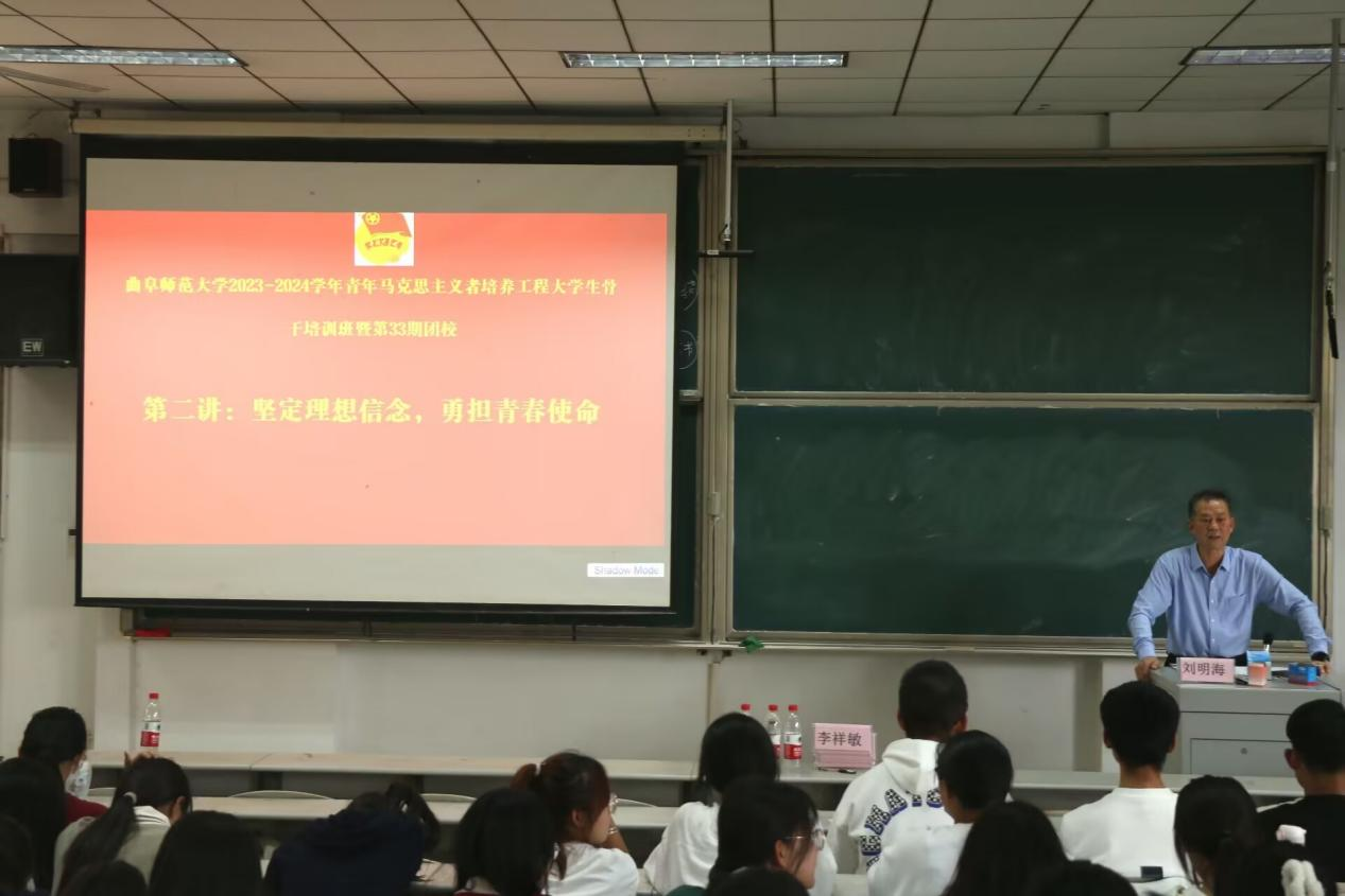 2023-2024学年“青马工程”大学生骨干培训班暨第三十三期团校培训第二课。本次培训由学院党委书记刘明海主讲,学院团委书记李宴美主持,疯av