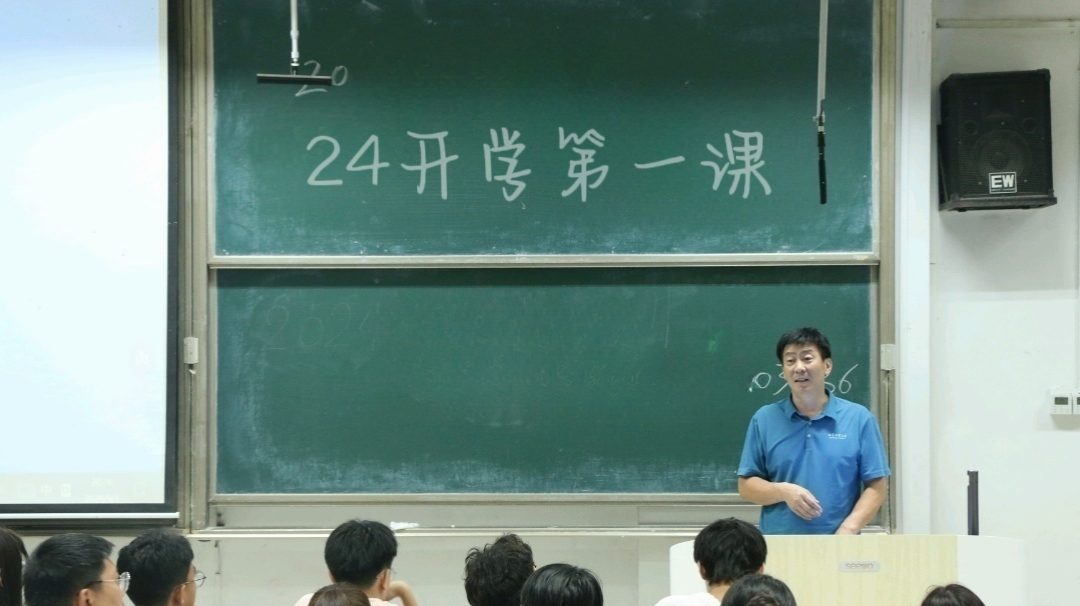 于2024年9月1日在综合楼106召开24级新生开学第一课。本次班会由学院党委副书记季中老师、团委书记李宴美老师和2024级辅导员李文静主讲,24级全体同学参加。