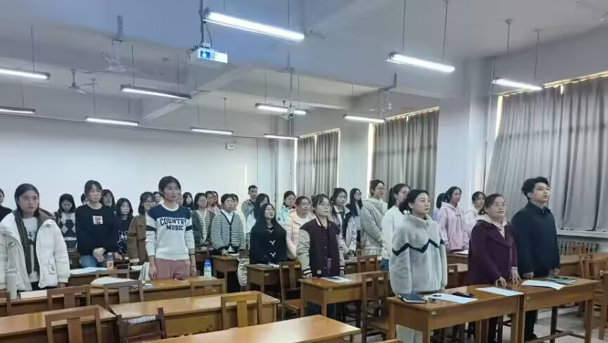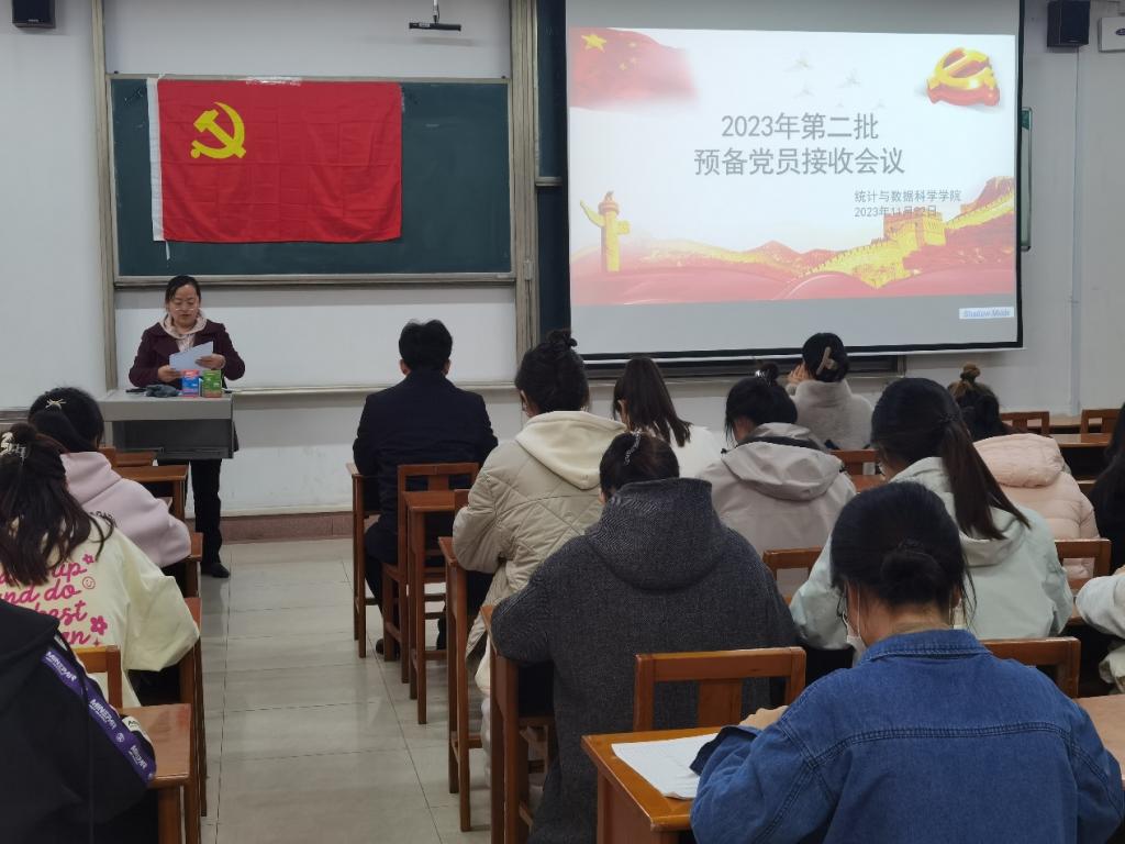 在综合楼205教室召开2023第二批预备党员接收及预备党员转正会议。本科生党支部组织委员李宴美、宣传委员李祥敏、2022级辅导员王旭及学生党员和预备党员参加此次会议,本次会议由李宴美老师主持。