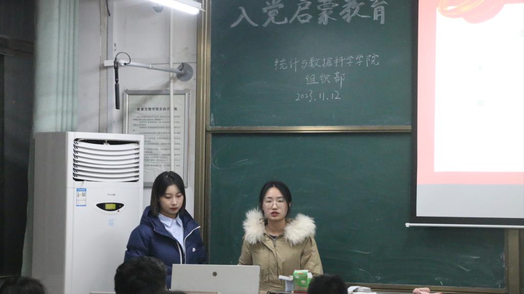于11月12日晚上19:00在学院固定教室103、107、111开展入党启蒙教育宣讲会。本次会议由本科生党支部组织委员李宴美组织,组织部部长韩雨彤、王亚男主持,2023级全体学生参加。