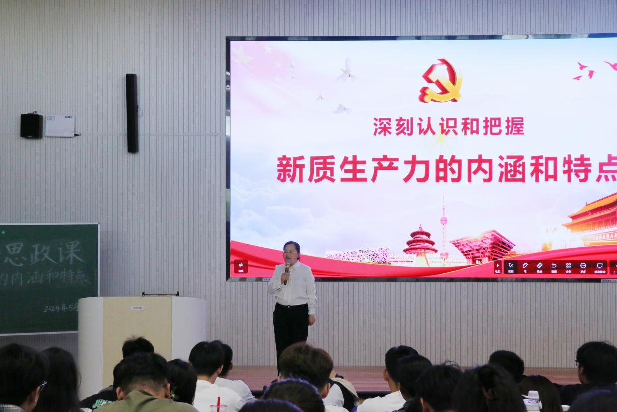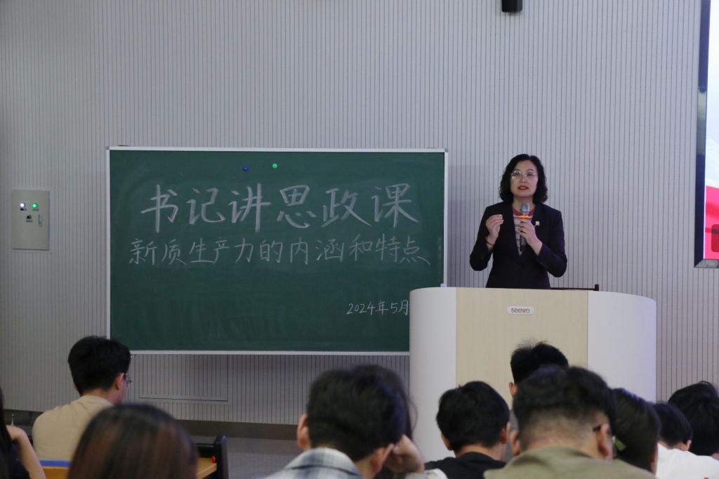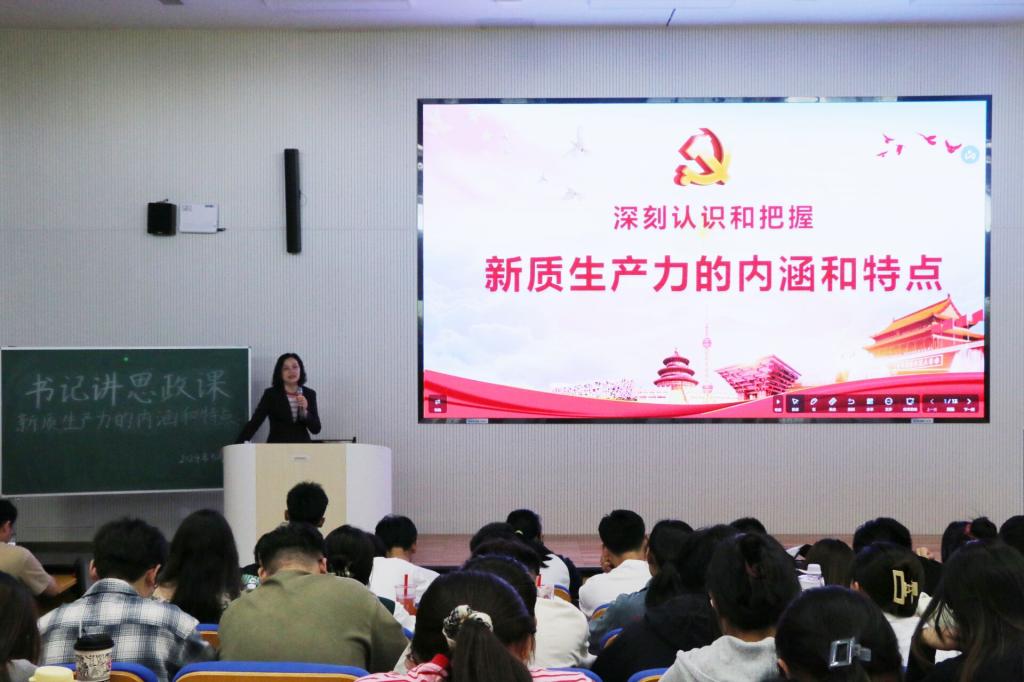 党委书记石倩为学生讲授题为《深刻认识和把握新质生产力的内涵和特点》的专题思政课,学院团委书记李宴美主持活动,疯av