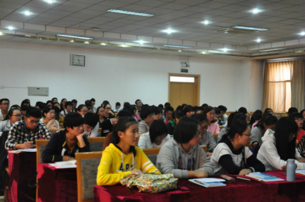 大会伊始,统计学院院长、博士生导师尹传存教授致辞。尹院长首先对2015级新生的到来致以热烈的欢迎和亲切的问候。接着,他向新生们介绍了学院和专业的总体情况,就学科评估、专业评估,中国经济学学位的发展做出讲话。副院长赵胜利教授在接下来的讲话中对统计学与应用统计学的就业前景作了客观介绍,鼓励同学们要好好学习专业课知识,打好基础,为将来的就业做好充分准备。大会第三项,教务员刘艳丽老师对选课、考试等一系列规章制度进行了讲解,这些对大家过好大学生活有很好的指导意义。最后,团委书记刘永礼老师对本次60周年校庆期间的安全问题做了嘱咐,提醒同学们要礼貌待人,用微笑迎接每一位来校的校友。