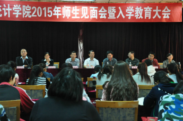 2015年10月14日下午3时,统计学院2015级师生见面会暨入学教育大会在科技楼二楼南会议室成功召开。出席本次大会的领导和老师有:数学与统计学院党委书记王方立,统计学院院长、博士生导师尹传存教授,数学与统计学院党委副书记王作茂,副院长赵胜利教授,教务员刘艳丽,统计学院办公室主任吴雷,辅导员李玲。大会由团委书记刘永礼主持。