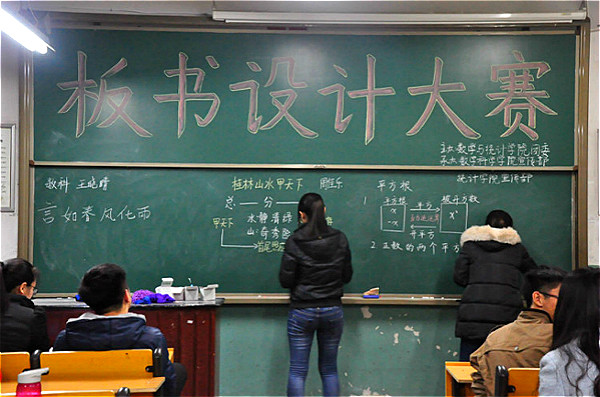 为了进一步培养学生的实践动手能力、培育浓厚的学习氛围、全面提高学生的综合素质。12月4日晚上六点,数学与统计学院团委主办了“板书设计大赛”。