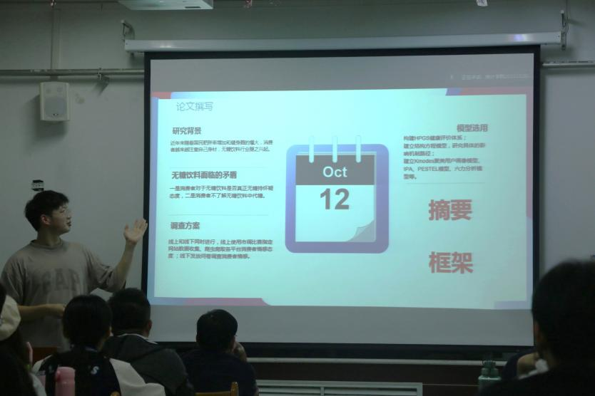 崔航针对全国大学生市场调查与分析大赛进行了经验分享,分别从竞赛流程、主题选择、论文撰写、答辩技巧等方面介绍了其团队的比赛经历。崔航表示,论文的摘要非常关键,并就此提出了相关建议,有助于同学们赛前知识准备和思路把握。