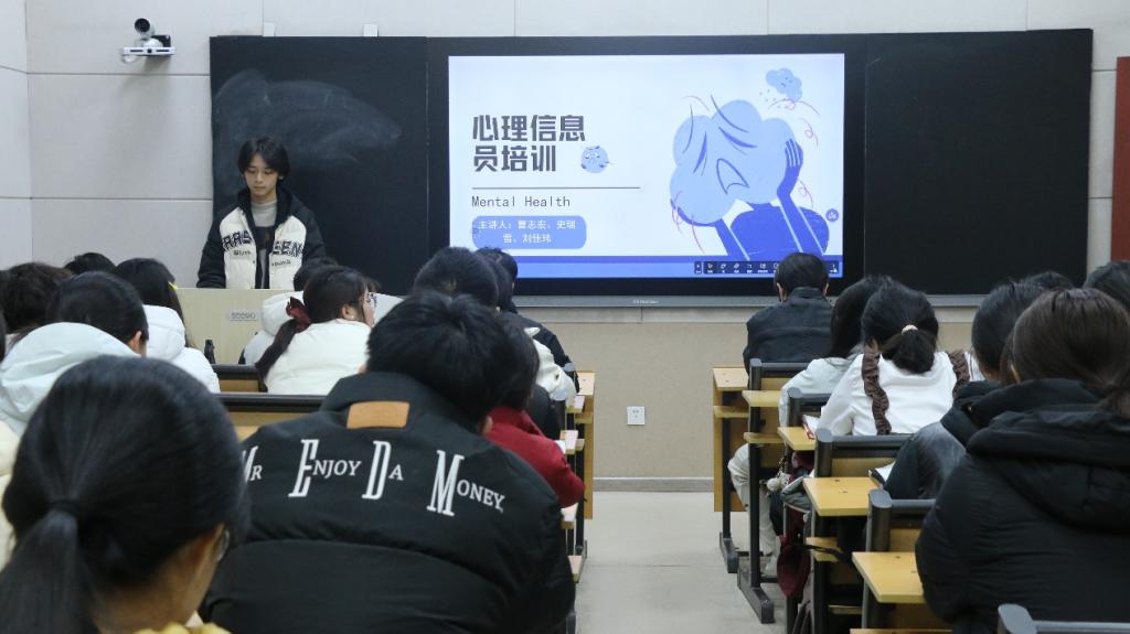 该宣讲分别围绕心理信息员职责、心理危机预防及常见心理问题识别与应对展开讲解,以强化心理信息员对其角色的理解,帮助同学们更好地了解和重视心理健康。在培训过程中,宣讲员耐心细致地为心理信息员们讲解心理健康知识,传授如何有效进行心理疏导,以及如何缓解同学们的压力的方法,指出每一位心理信息员在守护心理健康方面的责任。此次活动不仅促进了心理健康知识的广泛传播,也有效地营造了良好的心理健康氛围,增强心理信息员的责任担当,为未来心理健康工作的开展奠定基础。