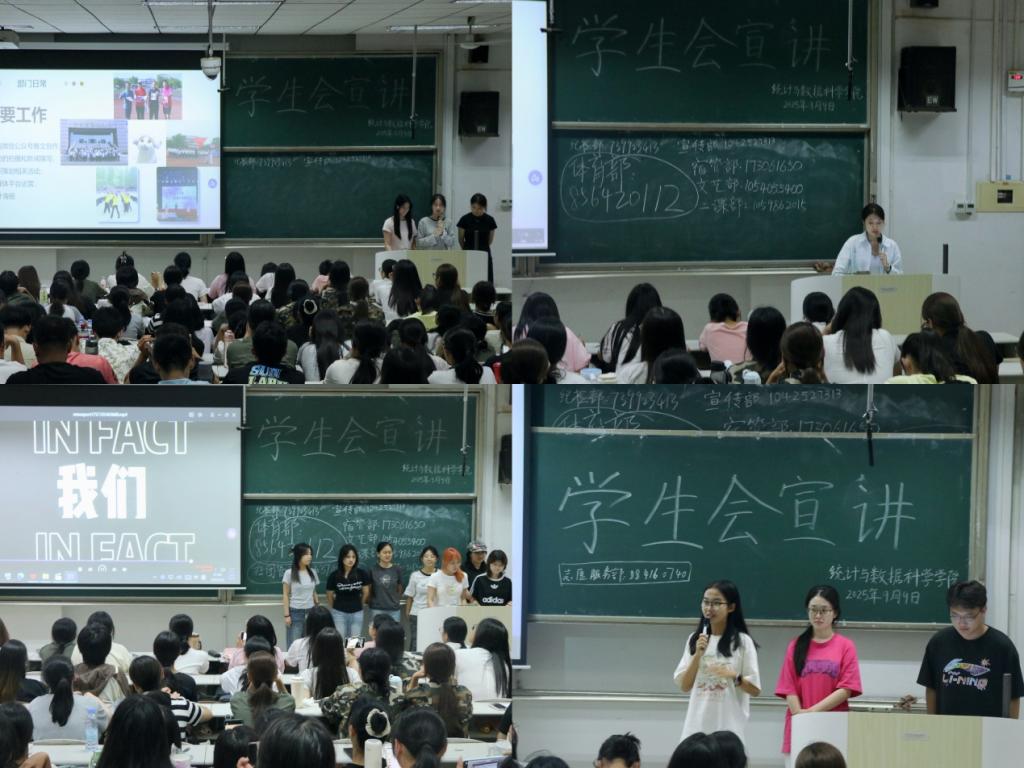 于9月9日在综合楼201举办学生会部门迎新宣讲会。本次宣讲会由学生会团委副书记孙艺萌主持,学生会各部门部长主讲,2025届全体新生参加。