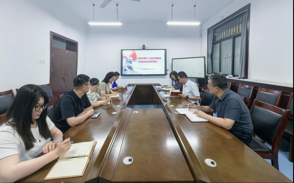 党委理论学习中心组于学院 106 会议室开展集中学习活动。本次学习围绕科研诚信建设展开,旨在大力弘扬新时代科学家精神,强化科研人员的科研诚信意识,筑牢科研诚信底线,推动科技创新生态的优化与完善,营造求真务实的学术氛围与科研环境。学习会议由学院党委书记石倩主持,学院党委理论学习中心组成员参与。