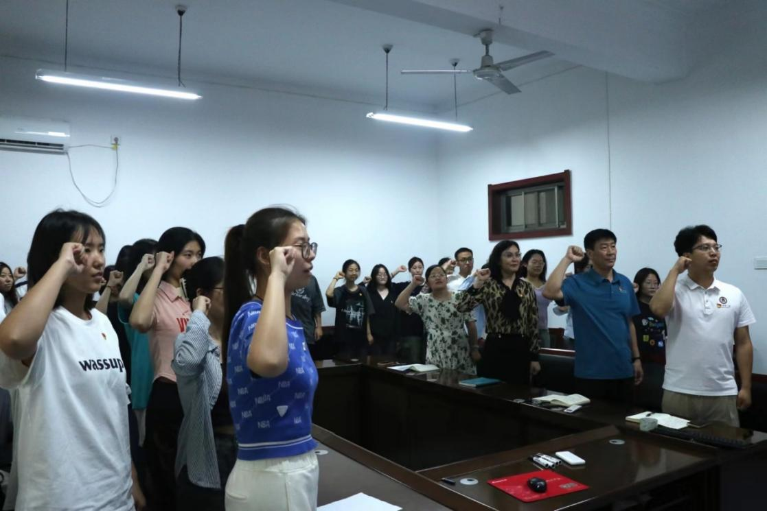 于7月10日在学院106会议室举行坚定理想信念,争做合格党员2024年上半年新发展党员集体谈话活动。学院党委书记石倩、党委副书记季中、各年级辅导员出席会议。会议由学院组织员李宴美主持。