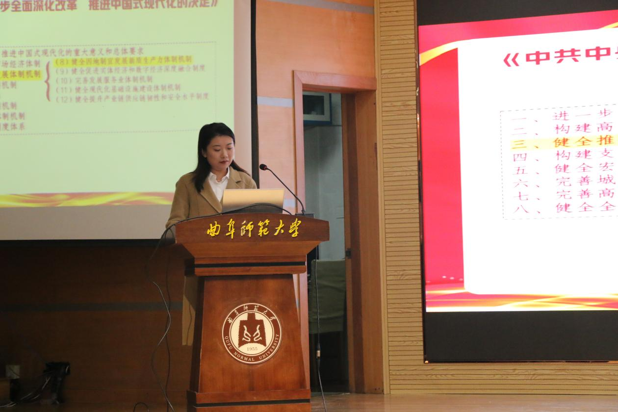 (通讯员:张佳怡)为深入学习贯彻党的二十届三中全会精神,提升学生的理论素养与实践能力,并激发青年学子的责任感与使命感,马克思主义学院宣讲团于2024年10月23日下午2点在孔子会堂成功举办党的二十届三中全会精神专题宣讲会。本次会议由团委书记李宴美主持,主讲人为马克思主义学院宣讲团成员,疯av