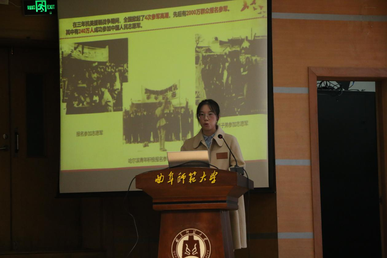 第二位宣讲人以“凝聚青年力量,建功伟大精神”为主题,提出了“同学们应如何理解青年精神”的问题,她指出:百年前,正是一群满怀激情与理想的青年,以他们的力量挽救国家于危难之际,通过展示一组跨越百年的图片,中国在百年间发生的翻天覆地的变化被生动地呈现在同学们的面前,而这些变化正是由一代又一代青年前赴后继、接力奋斗所取得的。一代代青年为国奋斗,一批批英雄事迹振奋人心,让人肃然起敬,党的二十届三中全会精神激励新时代青年要胸怀理想、勇于担当,吃苦耐劳、不懈奋斗,肩负起民族复兴的伟大使命,为推动中国社会发展、实现中华民族伟大复兴贡献青春力量。