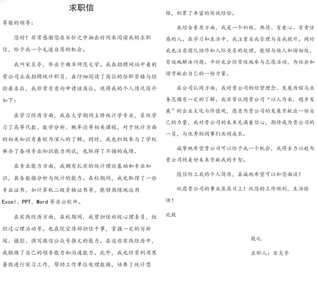 此次求职信书写大赛的成功举办,不仅有助于选手们更好地了解自己,明确自身职业发展方向,更好地规划自己的职业发展路径,还有助于选手们建立自信心,更好地应对求职过程中的挑战。在学校和学院的持续关注和支持下,统计学子们必将在未来的求职道路上展现出更加卓越的风采。