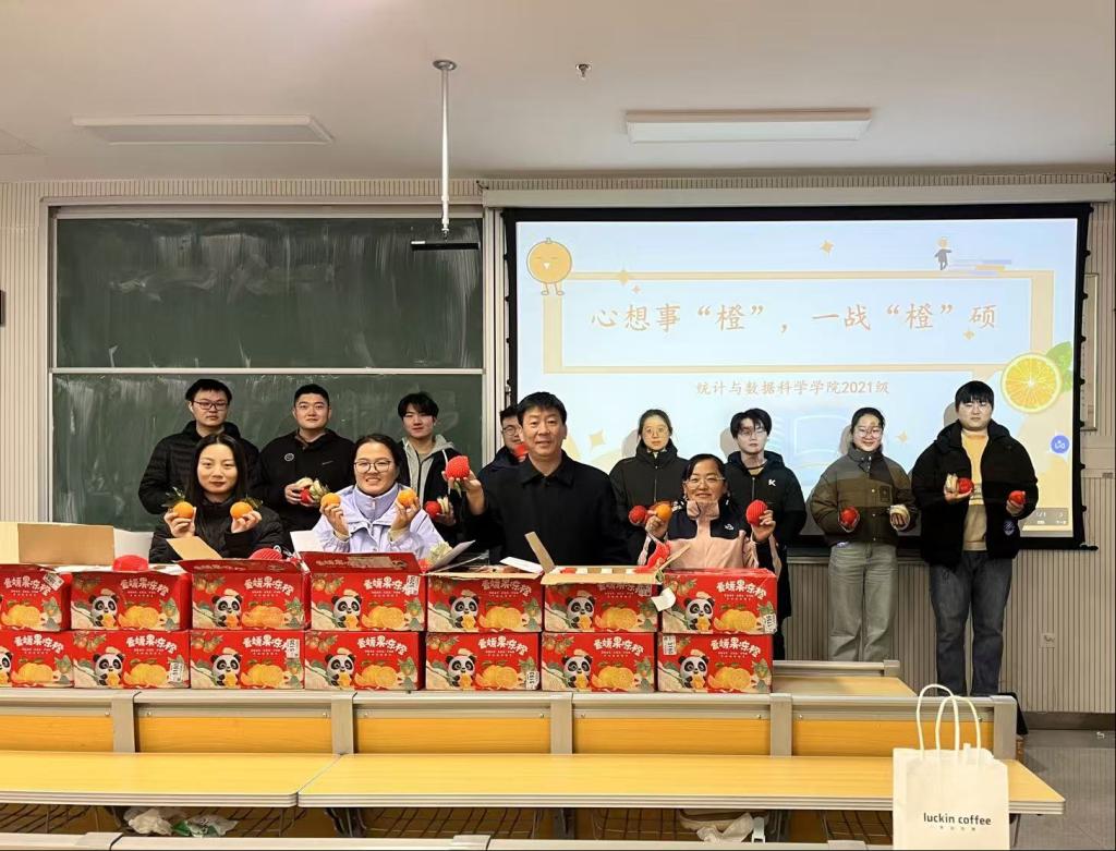 活动初,主持人阐明此次活动的目的是激励考研学子能够在备考最后的时光中坚持下来,传递学院对他们的真切关怀。而后,活动正式开始,老师们不仅表达了对考研学子们的真挚祝福以及殷切期望,还告诉同学们要找到适合自己的方式来调整好心态,不必过度紧张,一定要给予自己信心,保持积极的心态去迎接考试的到来。最后,老师们为考研学子们送上了特意准备的橙子,寓意着21级考研学子能够心想事“橙”,一战“橙”硕,同时祝愿所有考研学子都可以如愿上岸。