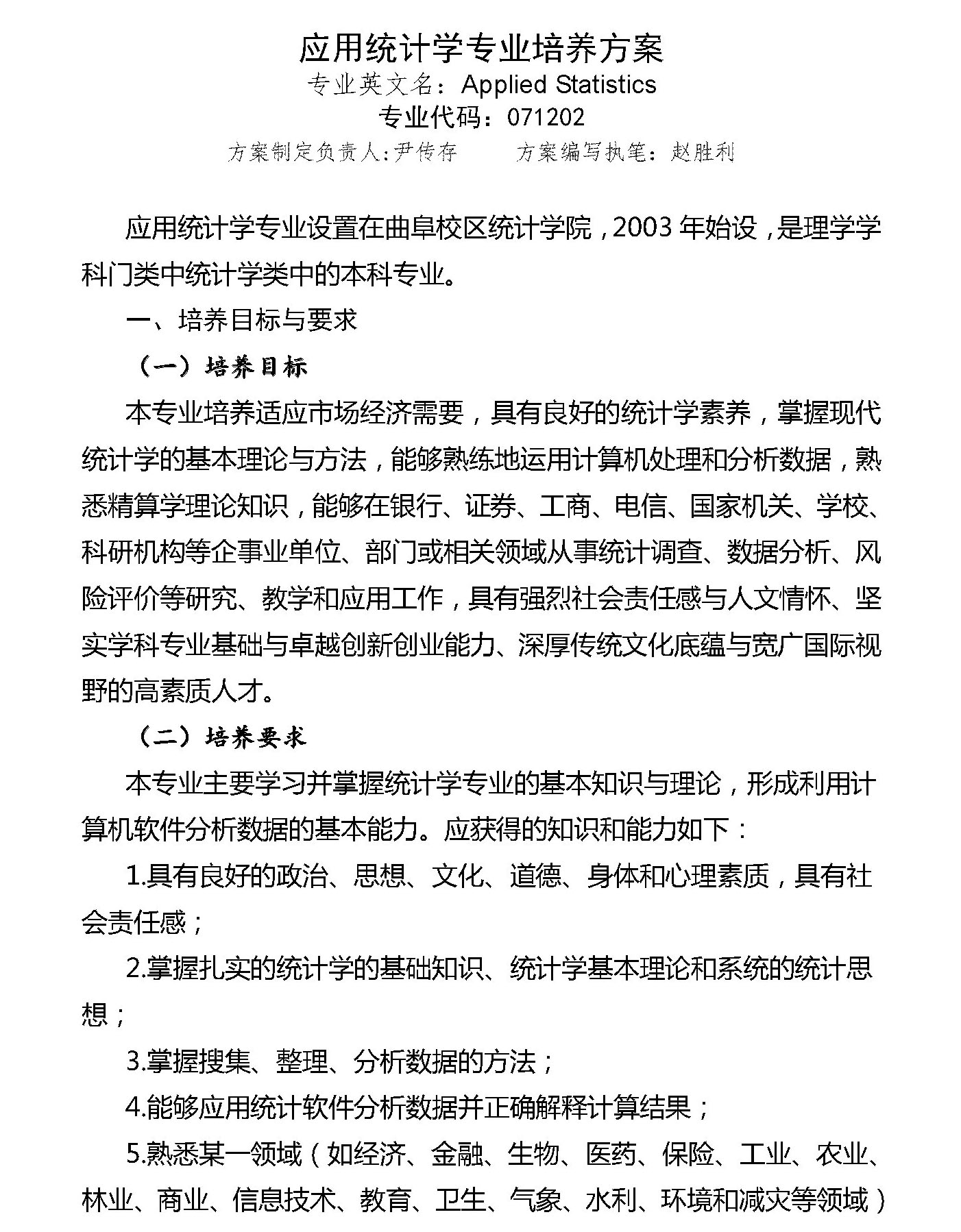 应用统计学-2017年人才培养方案修订指导性教学计划表