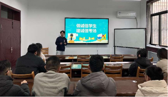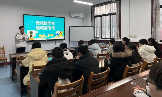 各班级迅速行动,于2024年12月27日下午组织召开诚信教育主题班会,为同学们拧紧诚信应考的“思想发条”。班会期间,辅导员及班委们言辞谆谆,反复向同学们阐述诚信考试的深远意义,着重强调其对个人学业发展、品德修养以及学院整体学风建设的关键支撑作用。同时,明确严肃纪律:一旦察觉任何作弊的蛛丝马迹,将即刻依规上报,绝不拖延,坚决将考试作弊的念头扼杀于萌芽状态。通过这种全方位、多角度的深入交流,同学们内心深处对诚信应考的认知愈发深刻,纷纷表态将以实际行动捍卫考场的纯净与公正,凭真才实学书写满意答卷。