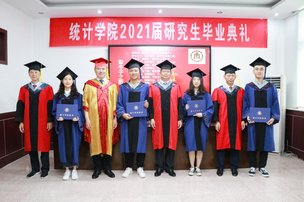 统计学院2021届研究生毕业典礼暨学位授予仪式在学院213会议室举行。学校党委常委、副校长屈跃宽,学院党委书记刘明海,院长尹传存,副院长赵胜利出席活动。研究生导师、研究生毕业生参加毕业典礼暨学位授予仪式。活动由刘明海主持。