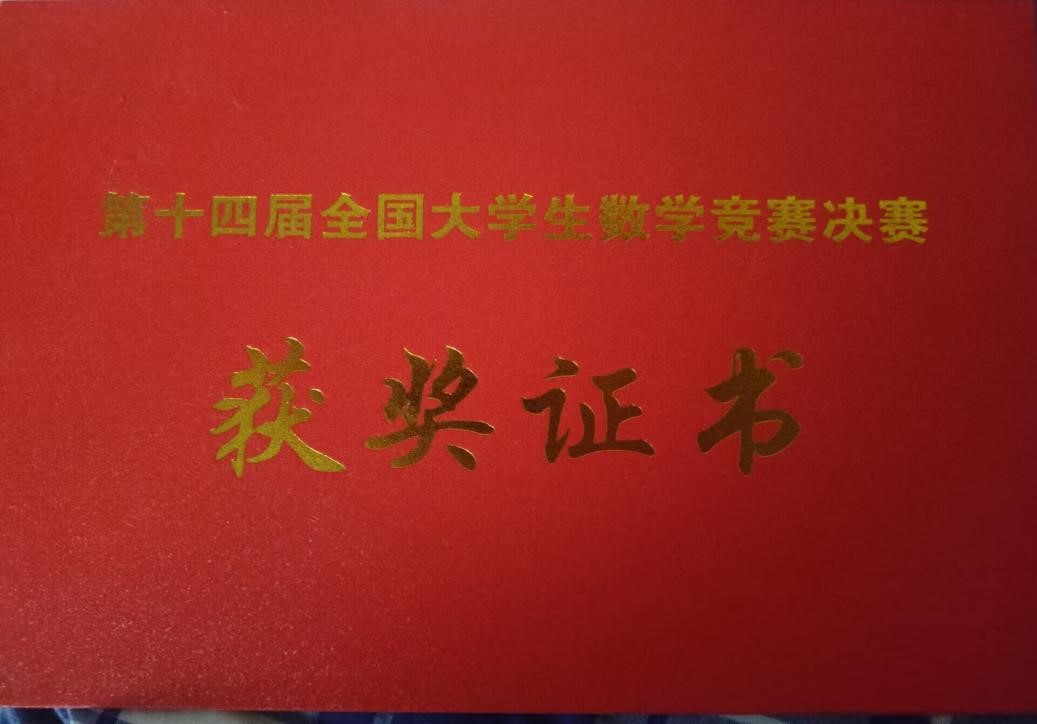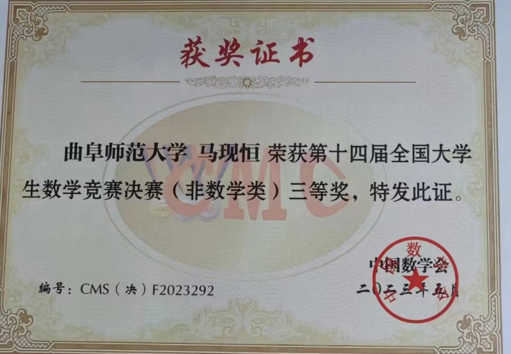 马现恒同学荣获非数学专业组决赛三等奖。