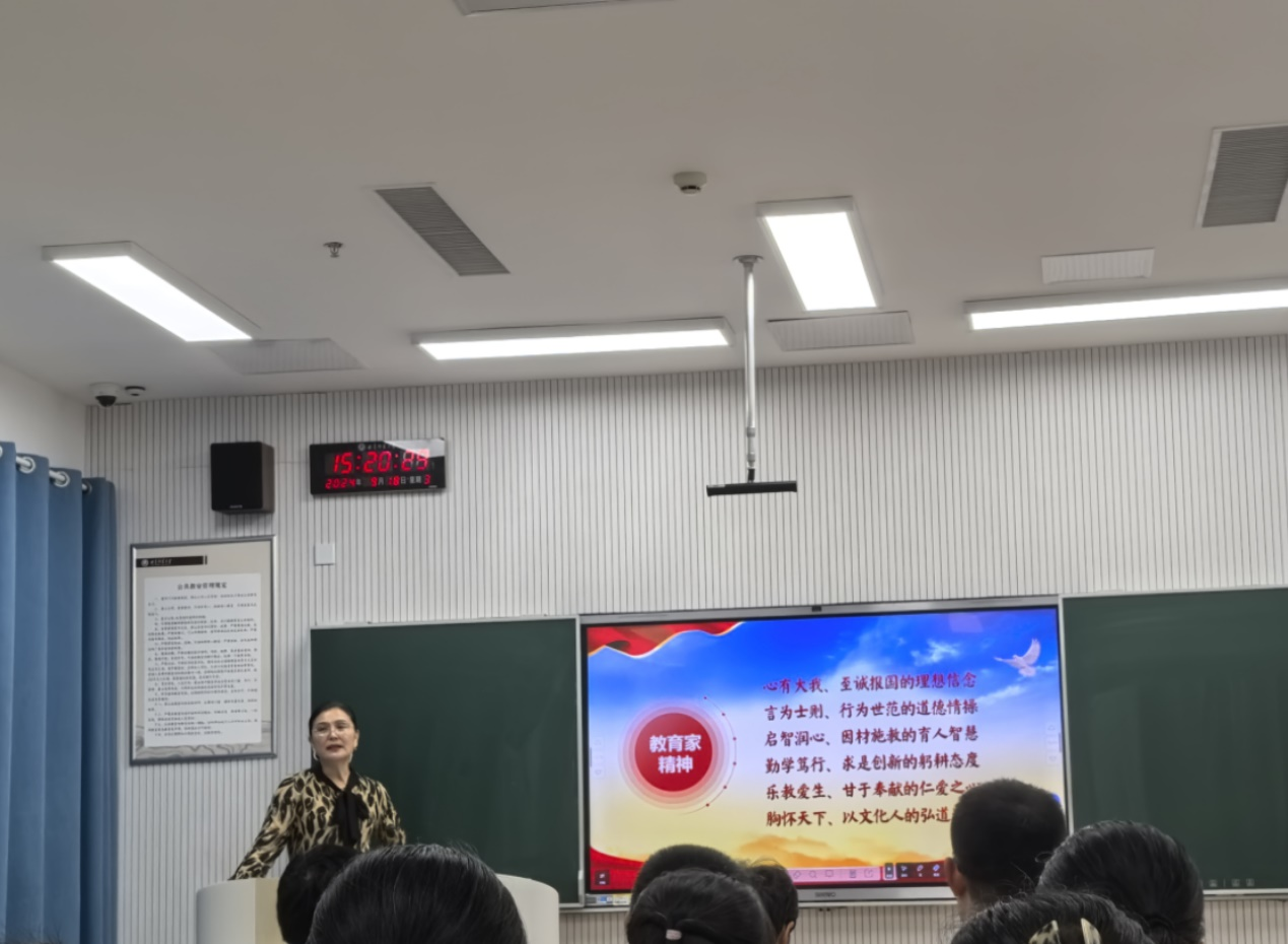 活动伊始,石倩书记从“心有大我,至诚报国”“言为士则、行为世范”“启智润心、因材施教”“勤学笃行、求是创新”“乐教爱生,甘于奉献”“胸怀天下,以文化人”六大方面带领大家分析学习了教育家精神的主要内容。她强调,教育家精神是教育事业的宝贵财富,是每一位教育工作者应当传承和发扬的崇高品质。她号召全院教职工要以此次学习为契机,深刻领会教育家精神的内涵,将其内化于心、外化于行,不断提升自身的师德修养和教育教学能力。