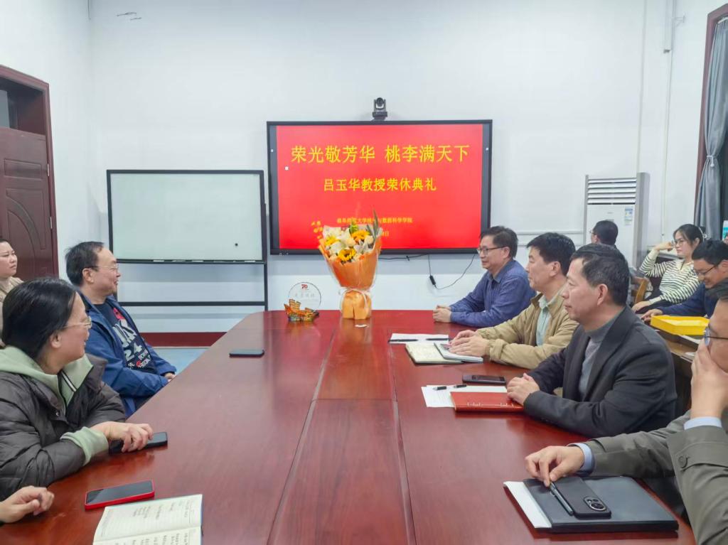 在学院会议室106举办吕玉华教授荣休典礼。作为学院首位退休教师暨学院建院以来的第一任工会主席,吕玉华教授在长达38年的教育教学和学院建设中作出了重要贡献。本次活动由学院工会主席尤洪龙主持,全体教职工积极参加,共同见证这一温馨时刻。